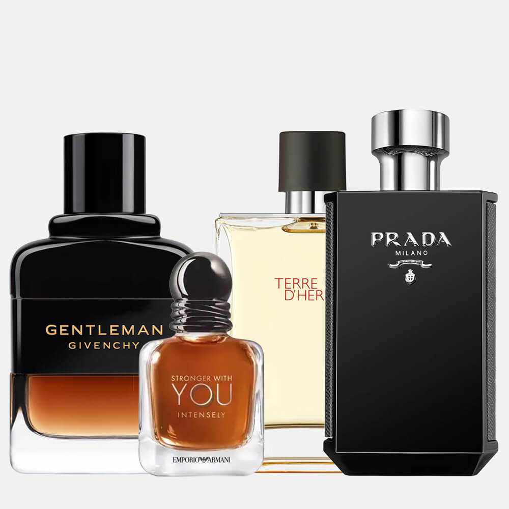 Ten zestaw skupia cztery kompozycje stworzone z myślą o bliskości i przyciąganiu: elegancko-słodkiego Givenchy Gentleman, zmysłowego i intensywnego Emporio Armani Stronger With You Intensely, głębokiego, irysowo-ambrowego Prada L’Homme Intense oraz szlachetnie drzewnego Terre d’Hermès. Razem tworzą pełne spektrum męskich zapachów na randkę — od ciepłych, otulających aromatów po wyrafinowane, pewne siebie kompozycje, które zostawiają pamiętliwy ślad. Idealny wybór, jeśli chcesz sprawdzić różne style „date scents” i znaleźć zapach, który podkreśli Twoją pewność siebie w najważniejszych momentach.